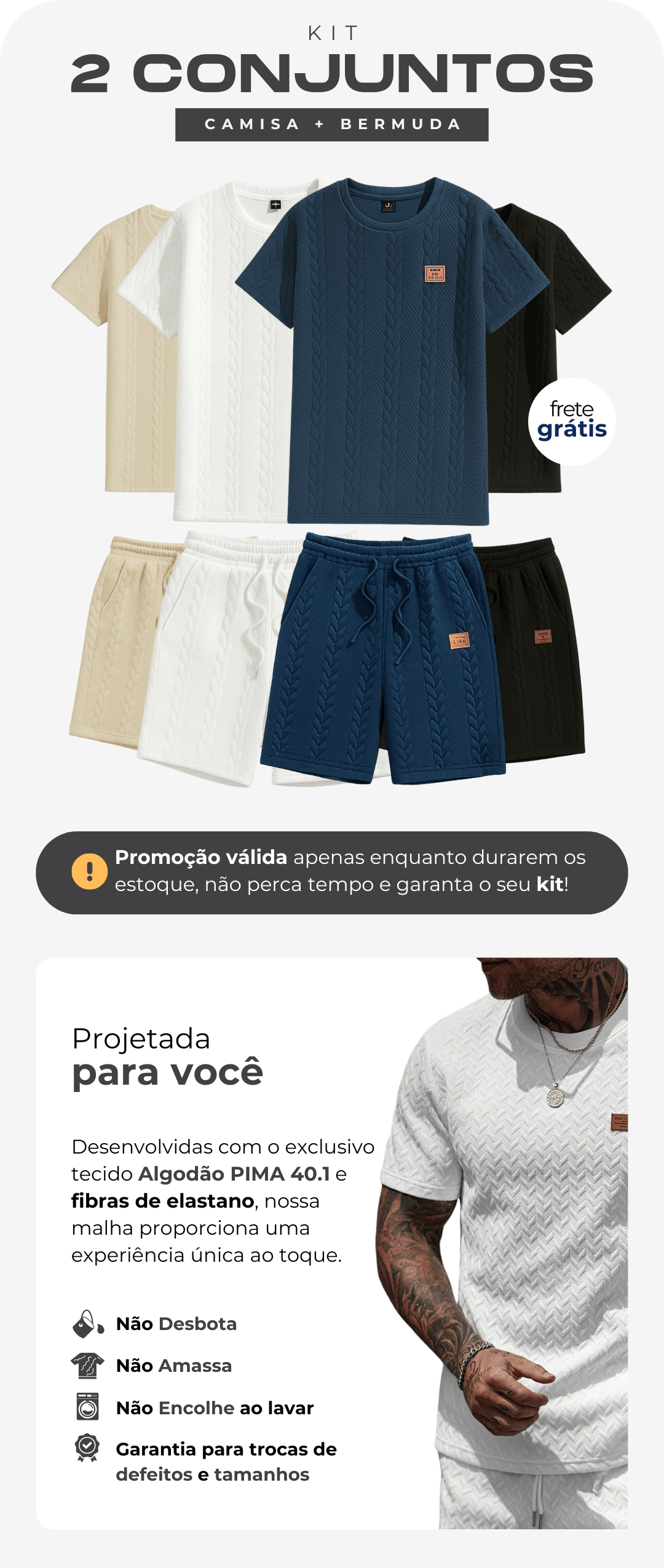 KIT 2 Conjuntos Streetwear |Camisa+Bermuda|