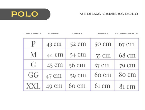 - Modelagem: Clássica da polo (ajuste confortável e elegante).